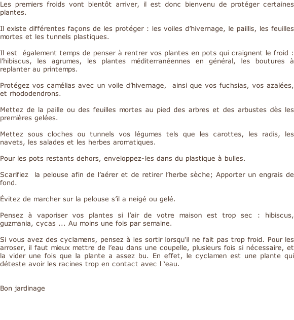 Entretien du jardin Au fil des mois